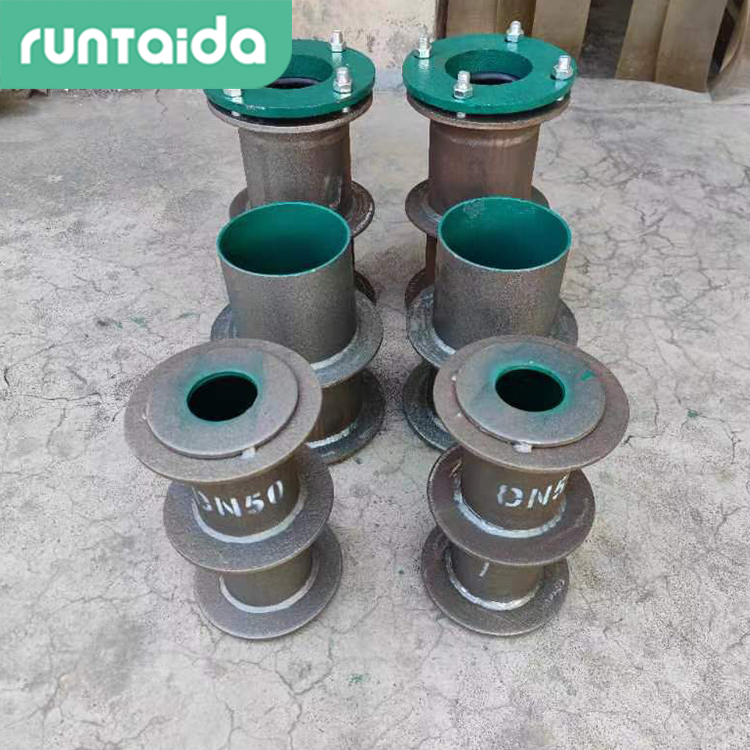柔性密閉防水套管是為了解決有些地下工程需要管路穿墻而過,而通過處又有嚴密防水要求;還有些構(gòu)筑物也需要管路穿墻而過,同時又限制管路不能因溫度變化或外力產(chǎn)生伸縮和位移,更不允許管路在外在因素作用下產(chǎn)生振動而設(shè)計制作的。它的外殼一次性澆注在墻壁上,管子從套管中間通過,管子外徑與套管中間用填料密封,起到了防水和減振作用。
